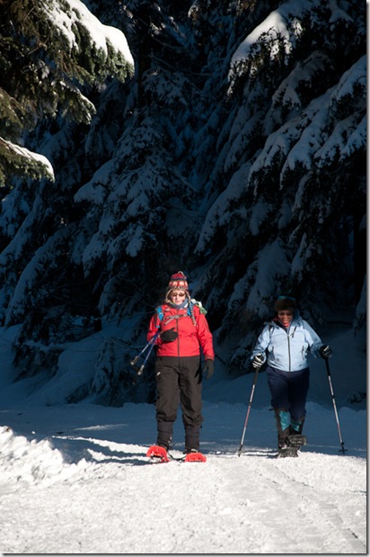 Went back to Gold Creek today where the sun was even brighter and there were more people.  The snow parks were full and everyone in Puget Sound seemed to be out enjoying the snow and sun shine with their kids and/or dogs.  As is our usual start to the new year, Vangi, Rich, Molly and I went snow shoeing.